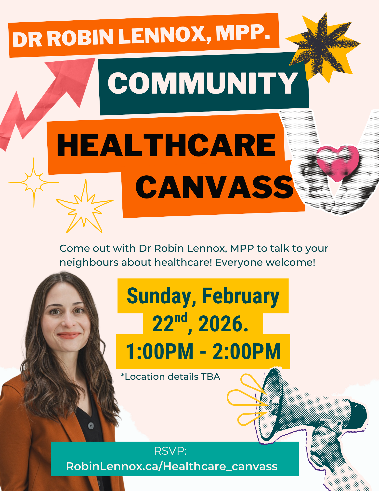Join us on Sunday, February 22nd to speak with our friends and neighbours about the future of healthcare.